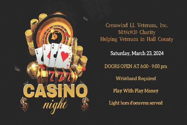 Don’t forget CASINO NIGHT on March 23rd. During the April 16th - 2nd Qtr. General Membership Meeting we will have a guest speaker to discuss the new VA compensation eligibility for Korean War Era, Vietnam War Era, and Gulf War Era Veterans to include spouse compensation. Please feel free to reach out to any of our Board members with any questions and visit our website at https://www. cresswindveterans.org/.