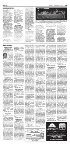Men from the congregation of Arbor Pointe Church presented “A Living Last Supper” on April 17. In this dramatization, the still scene of DaVinci’s famous painting was brought to life as each of Jesus’ disciples shared remembrances of their life with Jesus. sss Covenant Baptist Church is now meeting in West Jackson Primary School on Highway 53 in Braselton. Covenant Baptist Church is a familyintegrated, gospel centered church whose mission is to make disciples of Christ and equip families to grow in Him. We invite you to join each Sunday at 9:30 a.m. for Bible class and 10:30 a.m. for worship service. Nursery and children’s