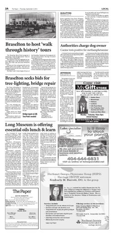 Continued from 1A The position of city manager remains unfilled although duties are being handled by clerk and assistant city manager Priscilla Murphy. At its Aug. 24 meeting, the council also made a budget adjustment to provide for a fire suppression system for the Crawford W. Long Museum. Bids were still coming in for the project which has been on the radar for a couple of years. It was anticipated the project would come in under budget. Authorization was provided so the final budget proposal could be ready for required advertisment. The proposed budget is now available for review at city hall and online at www.cityofjeffersonga.com with the final budget review and