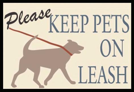 •PETS All pets should be leashed and accompanied by the owner when outside a home and shall not be allowed to become a nuisance by barking or other acts. Owners must ALWAYS clean up after their pets.