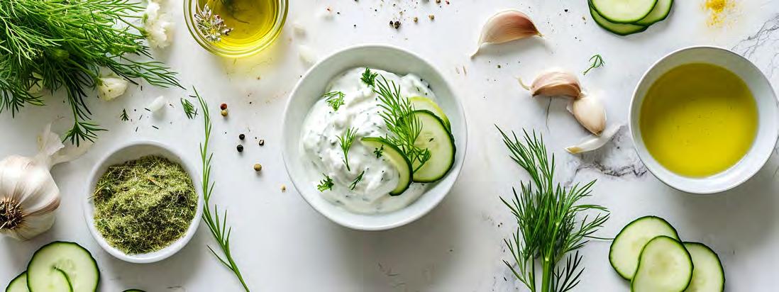 CombineIngredients: In a mixing bowl, combine the Greek yogurt, grated cucumber, minced garlic, olive oil, lemon juice, and chopped dill. Mix well until all the ingredients are evenly incorporated.