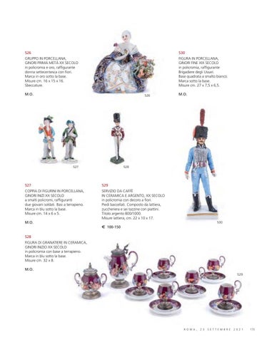 E 100-150 528 FIGURA DI GRANATIERE IN CERAMICA, GINORI INIZIO XX SECOLO in policromia con base a terrapieno. Marca in blu sotto la base. Misure cm. 32 x 8. M.O. 529