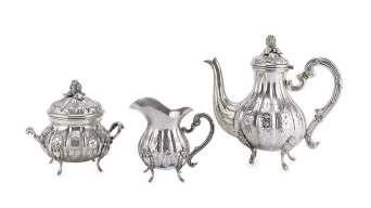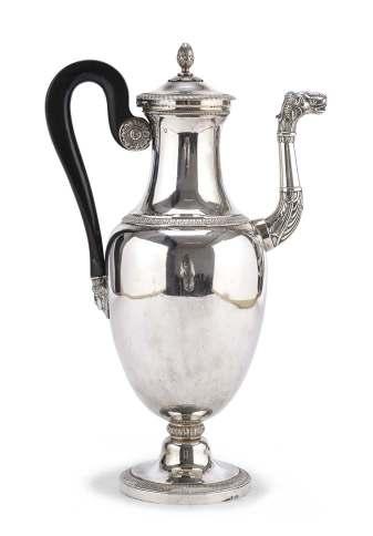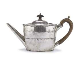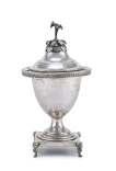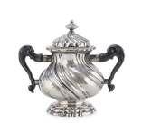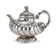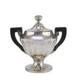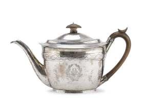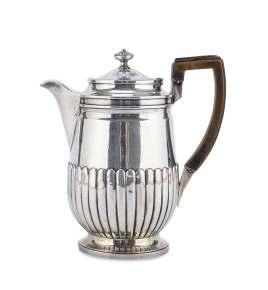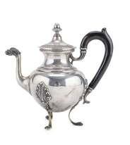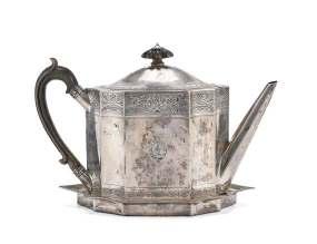 TEIERA IN SILVERPLATED, INGHILTERRA INIZIO XX SECOLO con corpo inciso a stemmi e motivi vegetali. Manici con separatori in resina.