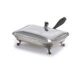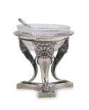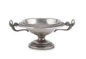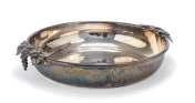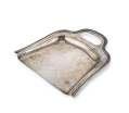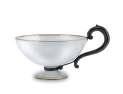 PORTACENERE IN ARGENTO, FORNARI ROMA 1970 ca. con manico ligneo e bordo a palmette. Piedi ferini.