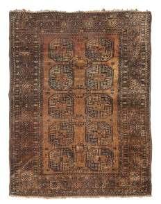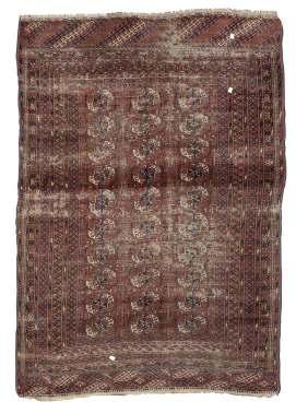 TAPPETO ERSARI AFGANO, INIZI XX SECOLO con medaglioni bokara, nel campo centrale a fondo vinaccia.