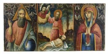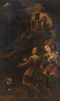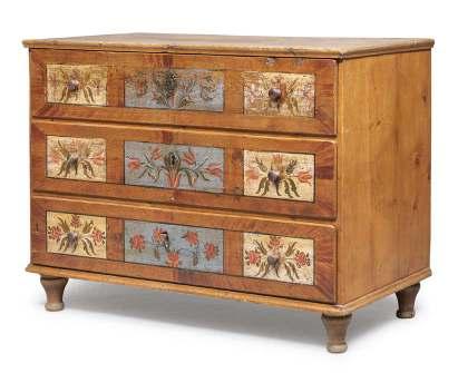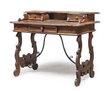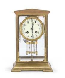 PENDOLA DA TAVOLO, AUSTRIA FINE XVIII SECOLO con cassa in legno sormontata da maniglia in metallo dorato e pinnacoli anch’essi in legno. Due sportelli in con bordi in legno dorato e vetro completi di chiave. Quadrante a smalto bianco a cifre arabe agli indici, numerato ai quarti con in alto tre piccoli quadranti di cui uno dipinto con scena di paesaggio luviale e due per la suoneria. Fessura orizzontale e due fori di carica. Movimento meccanico a carica manuale con scappamento a verga, due campane e cordino di richiamo per la suoneria.