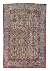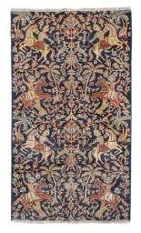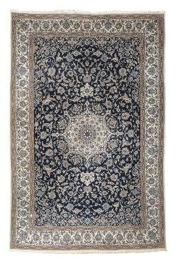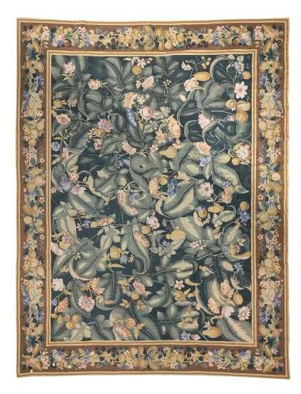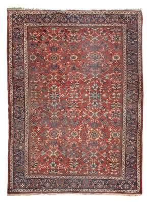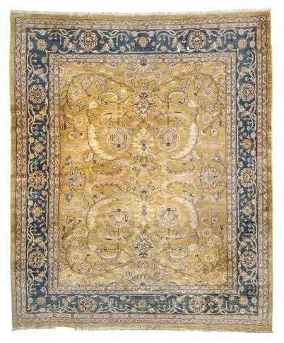 TAPPETO AD ARAZZO, XX SECOLO con disegno di ispirazione Mahal a grandi foglie ed herati, nel campo a fondo blu. Misure cm. 350 x 245.