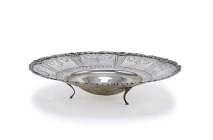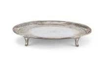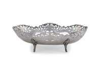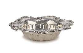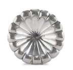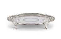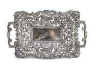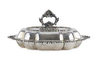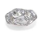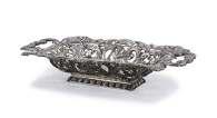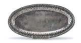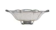 CENTRO IN ARGENTO, PUNZONE PADOVA 1970 ca. a corpo lobato con interno battuto. Bordo a cordone. Argentiere Calegaro. Titolo 800/1000. Misure cm. 12 x 27,5 x 30, peso gr. 972.