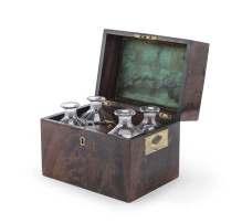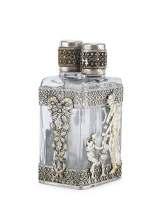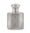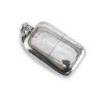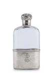 FIASCA IN VETRO E ARGENTO, PUNZONE LONDRA 1892 con stemma inciso e tappo a motivi vegetali.