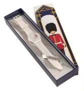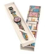 OROLOGIO DA POLSO, SWATCH MOMA con decoro a piani colorati realizzati da Piet Mondrian. Collezione artistica. Diametro cassa mm. 34.