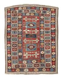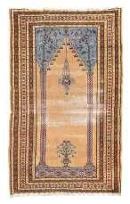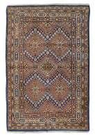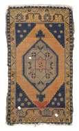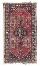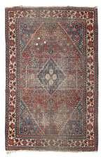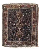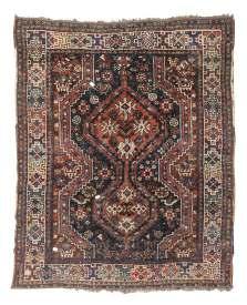 TAPPETO SHIRAZ, FINE XIX SECOLO con medaglione a croce e motivi secondari con rosette, nel campo centrale a fondo blu. Misure cm. 158 x 100.