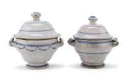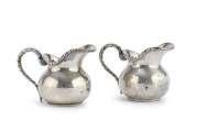 COPPIA DI LATTIERE MIGNON IN ARGENTO, PUNZONE ALESSANDRIA 1960 ca. con bordo e manici tortili. Argentiere Cesa. Realizzati per Petochi Roma. Titolo 800/1000.