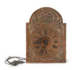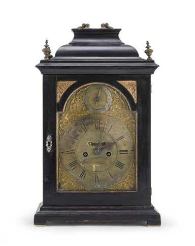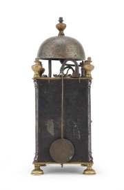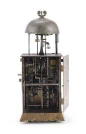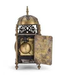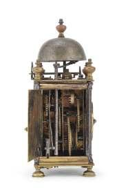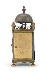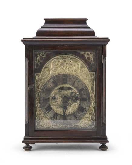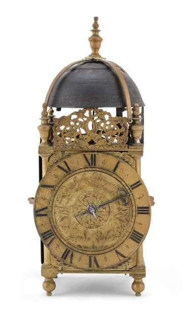 in ottone e ferro con quadrante con indici romani con decorazione incisa e irma ‘John Ebsworth Londini Fecit’. Porte laterali apribili, movimento in ferro.