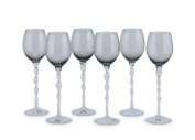 SEI COPPE DA VINO, XX SECOLO in cristallo con vasca verde sfumato e gamba a tortiglione.