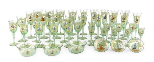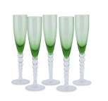 CINQUE FLUTES IN CRISTALLO, XX SECOLO con coppa a fondo verde sfumato e gamba a cordone.