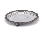 CENTRO IN SILVERPLATED, ITALIA XX SECOLO a sagoma circolare con applicazioni a tralci di edera.