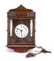 Firmato ‘Virag Jozsef Szolnok’, sul quadrante. Misure cm. 53,5 x 29,5 x 16. Difetti.