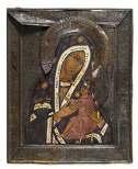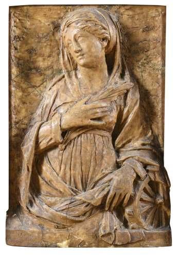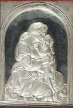 SBALZO IN METALLO ARGENTATO, FINE XIX SECOLO rafigurante la Vergine col Bambino entro una nicchia. Cornice in legno dorato.