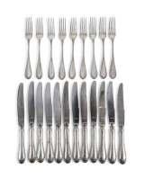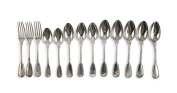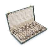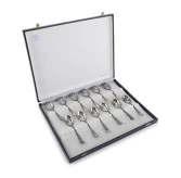 DODICI CUCCHIAINI IN ARGENTO, ITALIA XX SECOLO con manici a bordi a racemi. In cofanetto.