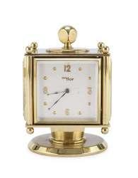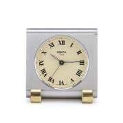 OROLOGIO DA TAVOLO, ANNI ‘50 con cassa in metallo. Quadrante bianco con indicazione delle ore a numeri romani agli indici; movimento a carica manuale.