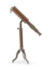 CANNOCCHIALE DA TAVOLO, INIZI XX SECOLO in ottone interamente rivestito in pelle, completo di tappo all’ottica. Base a tripode.