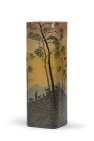 GRANDE VASO MANIFATTURA MURANESE, ANNI ‘60 a fazzoletto in vetro trasparente con fasce verdi e rosse.