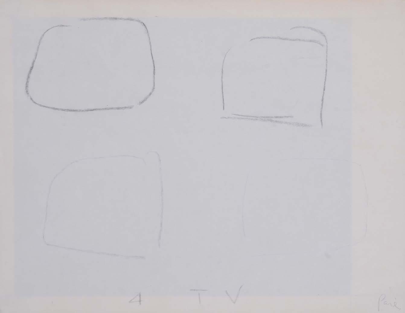 La mattonella rientra nella produzione eseguita per la pavimentazione di un professionista romano, realizzata tra il 1951 e il 1952. Bibliografia: 1981, Giuseppe Capogrossi, Gouaches, collage e disegni, a cura di Guglielmo Capogrossi, Edizioni Electa, Milano, pp. 40, 279, nn. 83-84.
