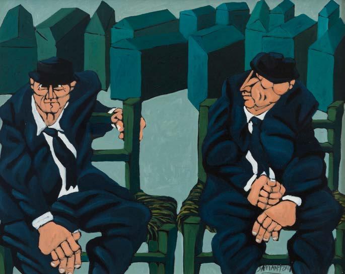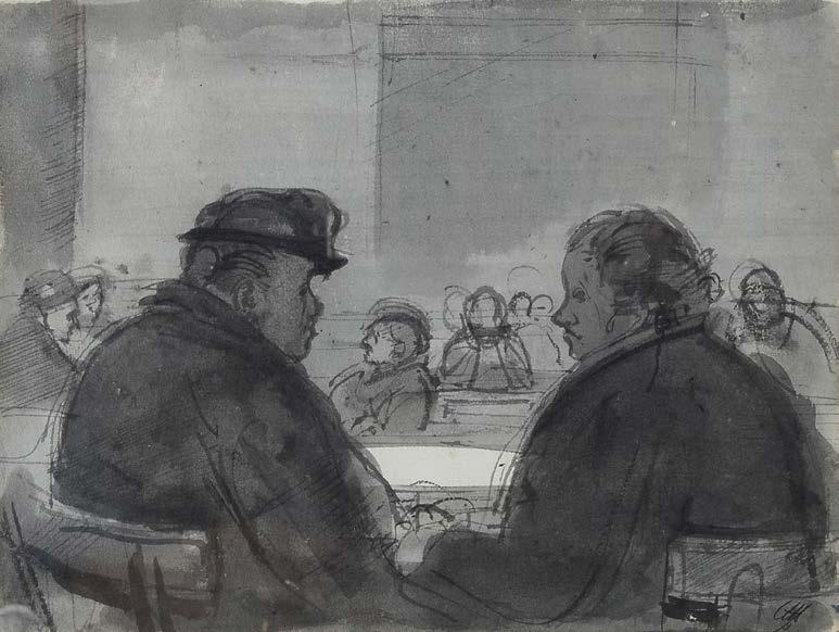 CONVERSAZIONE IN UN INTERNO Olio su tela, cm. 51.5x69.5