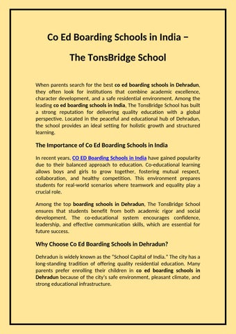 The TonsBridge School is recognized among Dehradun best CBSE schools, offering a perfect blend of academic excellence, co-curricular engagement, and character development. With modern infrastructure, qualified faculty, and a student-centered approach, the school nurtures intellectual curiosity and holistic growth. Committed to shaping future leaders, The TonsBridge School provides a stimulating learning environment that inspires success and upholds its reputation as one of Dehradun’s best CBSE schools.