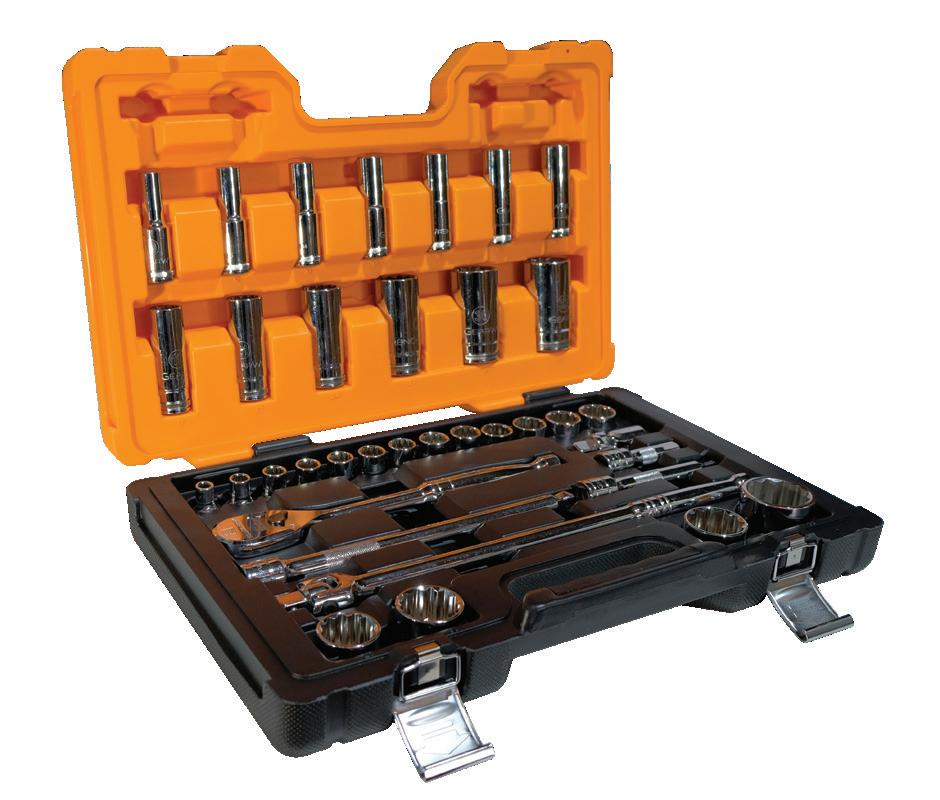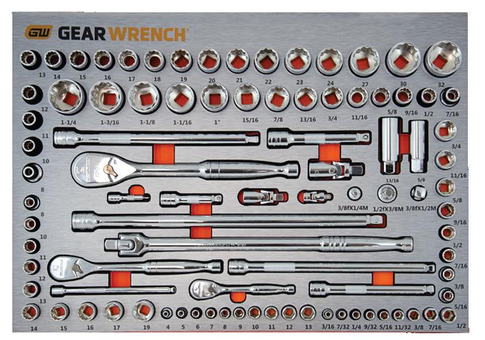 • SAE Socket Set: 7/16", 1/2", 9/16", 5/8", 11/16", 3/4", 13/16", 1", 1-1/16", 1-1/8", 1-3/16", 1-1/4"