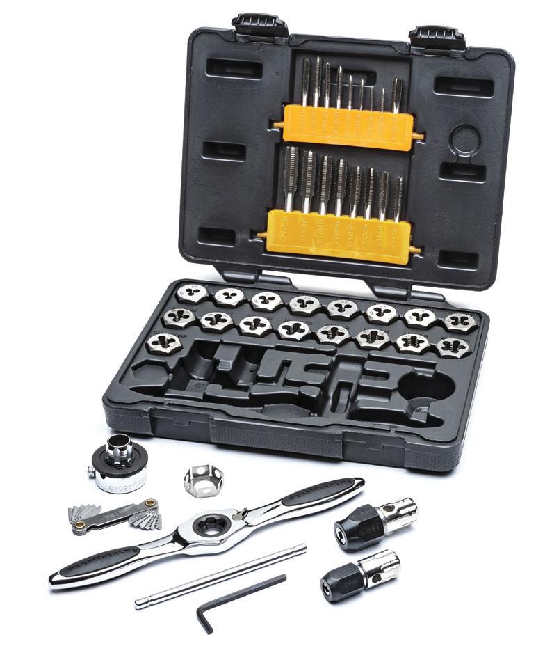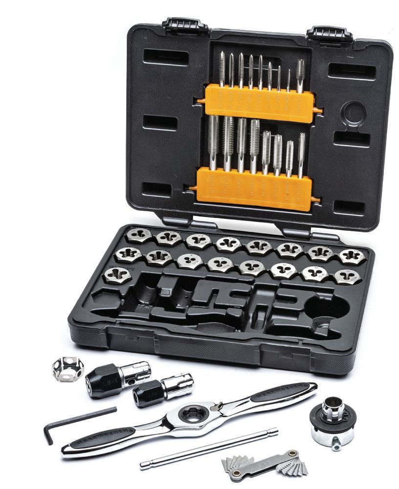 77 Pc. Ratcheting Tap and Die Set 3887 Set includes: Medium “T” Wrench, Small tap adapter, Medium tap adapter, Medium hex die adapter, Sliding “T” for adapters, SAE and Metric thread gauges and more... SAE SAE METRIC METRIC Set includes: Medium ratcheting “T” wrench, Small and medium tap adapters, Medium Hex die adapters, Thread gauge, #5 Screwdriver, Taper taps, Plug taps, NF plug taps, NC plug taps, BSP Tap, NC Hex die, NF Hex die and BSP Hex die METRIC Metric 3886 SAE SAE 3885 Tap & Die Sets 114 Pc.Ratcheting Tap and Die Set 82812 $ 215.00 INCL GST $ 241.00 INCL GST $ 373.00 INCL GST $ 723.00 INCL GST This GEARWRENCH promotion is run by Accent Tools Ltd, NZ GEARWRENCH, WELLER and SHINANO INC. Distributor. The store advertised on the back of this catalogue is an independent business. Whilst every effort is made to ensure that advertised stock is available at participating stores, due to factors beyond the control of Accent Tools Ltd, not all products advertised in this catalogue will be available at all stores. Accent Tools Ltd will do everything possible, within reason, to maintain stocks of advertised products, but cannot be responsible for unforseen shortfalls beyond their control. Promotional pricing and Bonus Items are available between 1st March and 31st May 2024. Offers available while stocks last. All sizes shown are approximate only. E & OE. © Accent Tools Ltd 2024 FOLLOW US WWW.GEARWRENCHNZ.CO.NZ Set includes: 2 ratcheting “T” Wrench,, 3 sizes of tap adapters and 2 sizes of die adapters, 2 extension adapters and a sliding T for the adapters, a 4mm hex key, 5 screw extractors, SAE and Metric thread gauges, and 48 taps and dies in SAE and Metric sizes ranging from 4-40 to 3/4” and 3mm to 18mm. 42 Pc. Ratcheting Tap and Die Set