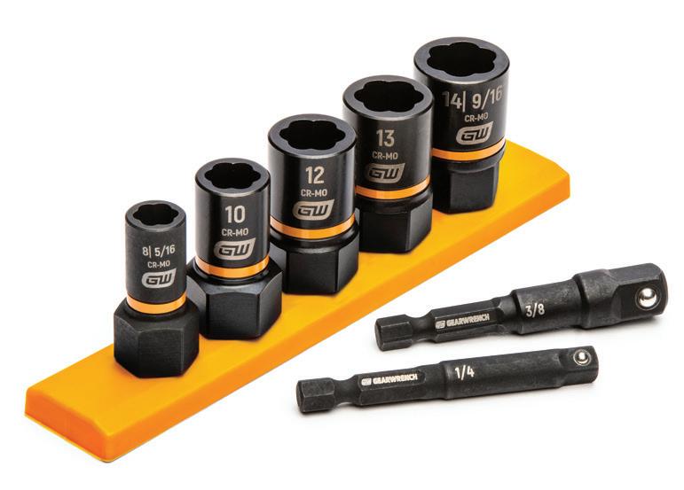 Drive TORX: T40, T45, T50, T55 1/2” Drive HEX: 12, 14, 17mm 1/2” Drive TORX: T60 MM 10, 11, 12, 13, 14, 15, 16, 17, 18, 19mm SAE: 1/2”, 9/16”, 5/8”, 11/16”, 3/4”, 13/16”, 7/8”, 15/16”
