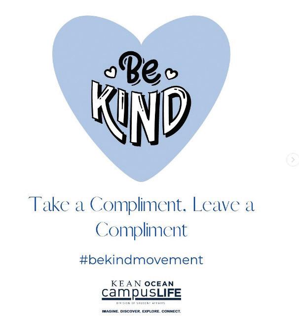 “I was so pleased to see that people were willing to participate in something that could really help someone on a bad day.”Photo by @keanocean_campuslife Take a compliment, leave a compliment flyer continued on page 12