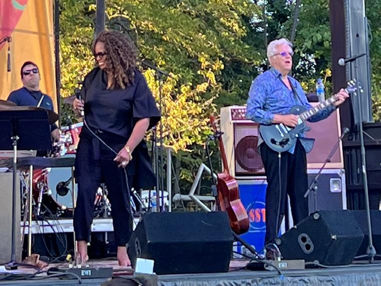 Photo by Adaora Nnakwe Dianne Reeves and Romeo Lubambo performing on stage at Jazz & Roots Music Festival