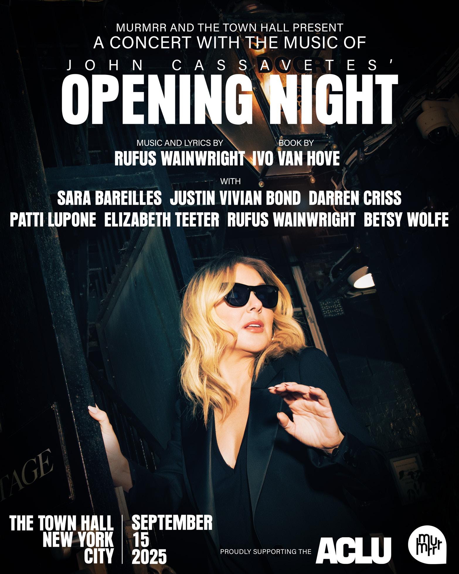Rufus Wainwright has reached out to a group of friends and colleagues in the music and musical theater world to perform the songs from Opening Night in a one-nightonly special concert at Town Hall, which will support the ACLU. Jason Hart, who was in Rufus’ band for many years, is the music director and is leading the orchestra that will perform Wainwright’s original West End arrangements. Wainwright will join the cast of talented performers and sing some of the songs himself, and act as the MC, leading through the evening and explaining the story of the musical.
