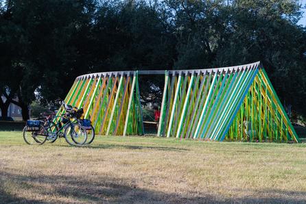 Forthethirdyear,TheTrailConservancywillpartnerwiththeLadyBird JohnsonWildflowerCentertohostasatellitefortaspartofthe2023Fortlandia exhibition.Debutingin2018,theWildflowerCenterhostsfantasyfortscreated bylocalartists,architects,anddesigners,highlightingtheappreciationof naturalenvironmentsthroughinnovativeandsustainabledesigns,materials, andconstructions–allevokingchildhoodmemoriesofplayandwonderinthe outdoors TheTrailConservancy’sSatelliteFortisfreeandopentoallagesand abilitiesalongtheButlerTrail.