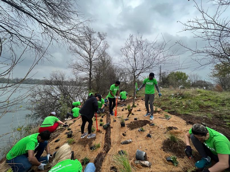 FundedthroughtheUrbanForestryGrantProgram,TTCplantedover 60irrigatedtreesandprovidedestablishedirrigationtoover45cityplantedtreesalongthenewHollyLakefrontTrail.Thisprojectwillhelp establishthefuturetreecanopyalongthisnewsectionoftheButler Hike-and-BikeTrailwhilealsoprovidingtheinfrastructureneededto continueplantingandrestorationeffortsinthecomingyears.