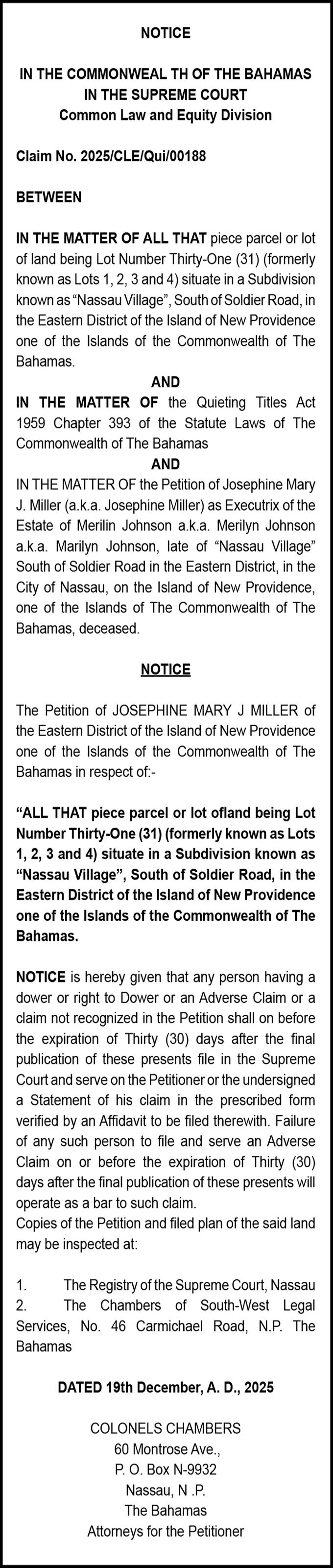 disclosed that the three power purchase agreements (PPAs) - that govern the price, and terms and conditions, on which each plant supplies electricitywere signed with Bahamas Power & Light (BPL) in December 2025 prior to the Christmas holidays. While declining to disclose figures, Mr Kerr told this newspaper that Andros Renewable Energy Company believes it will be able to supply more reliable, cleaner and affordable energy at a price that is “a lot less” than BPL’s current tariff rates and costs. And, pledging that the group “won’t be wasting time”, he added that it has already been conducting site visits to the proposed plant locations in Nicholl’s Town, Fresh Creek and the Bluff over the past year to assess engineering and geotechincal conditions plus the available