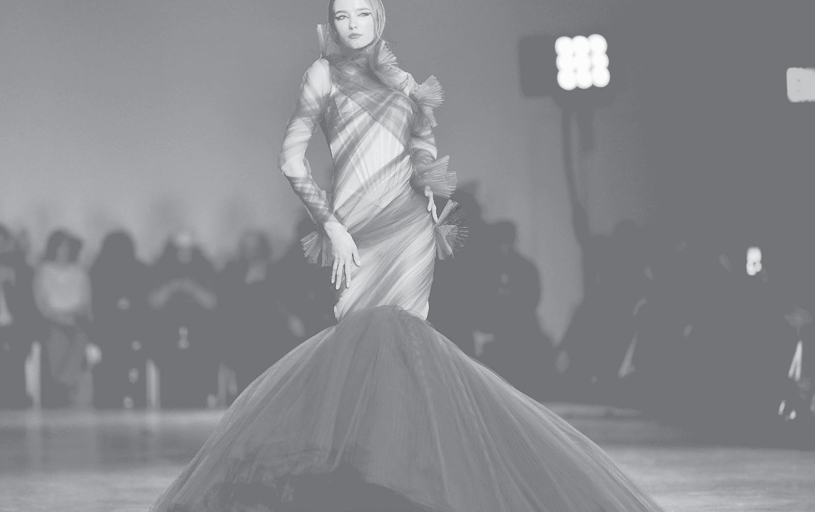 Siriano's collection reimagined red carpet silhouettes including eye-catching gowns with dramatic asymmetric necklines and exaggerated tulle