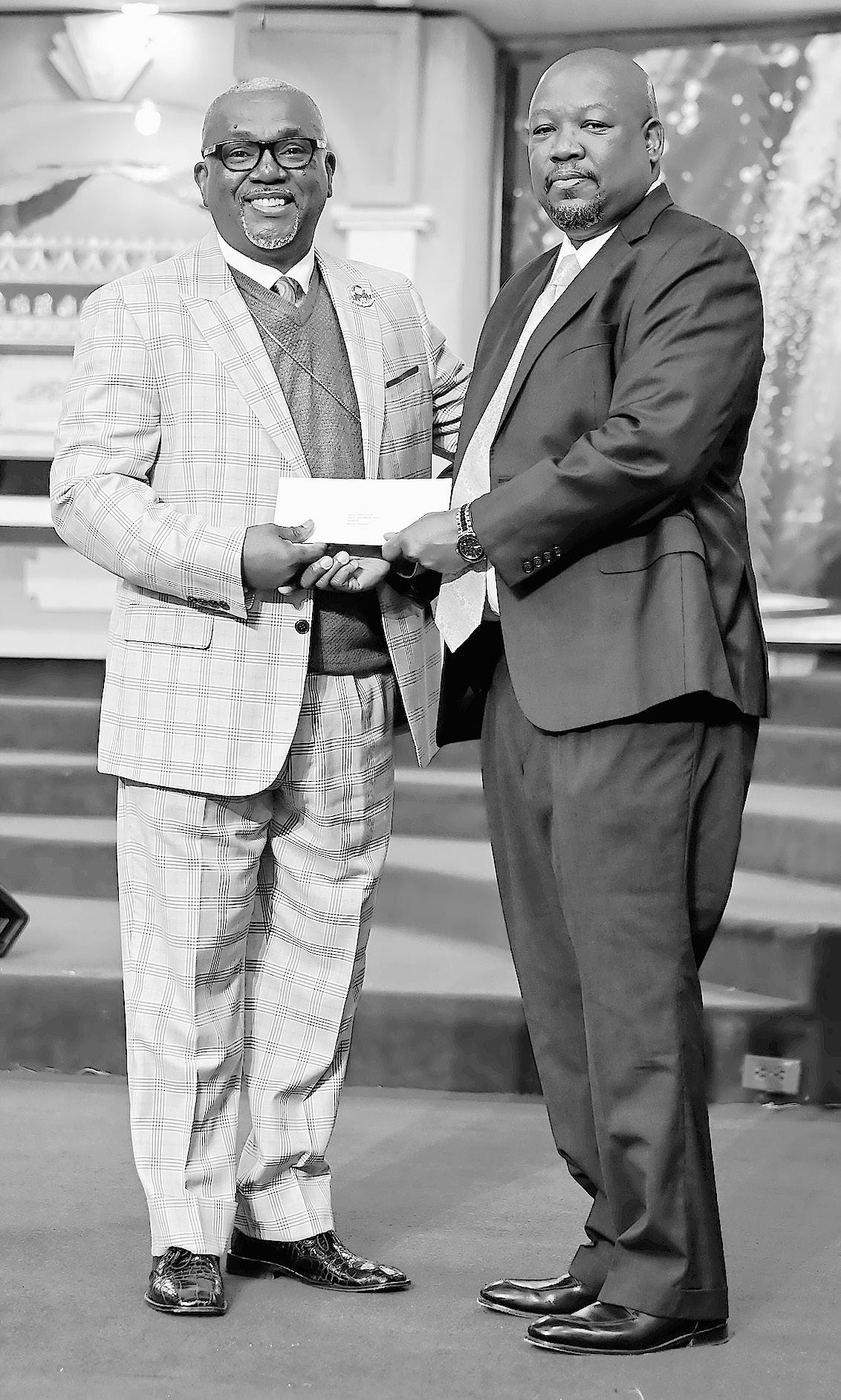 BIA chairman, Julian Rolle, presents Bishop Ellis with a donation on behalf of the BIA.