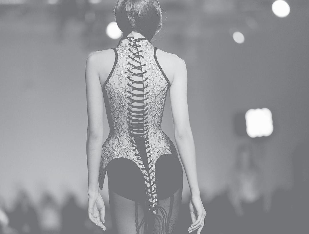 Whoopi Goldberg and rock singer Taylor Momsen. The show opened with black and white structured looks before models emerged dipped in a sea