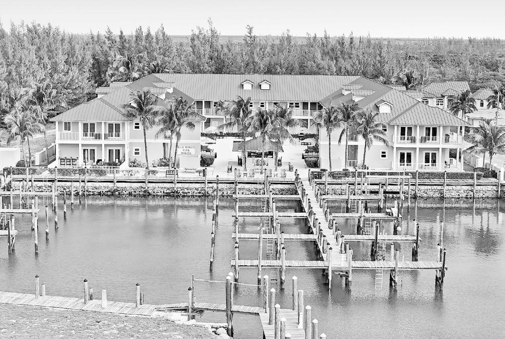 with Jacuzzi spa, tiki bar and restaurant and outdoor kitchen areas. The resort’s freehold marina has deep-water channel access for vessels up to 100 feet in length. There are 30 existing slips, with infrastructure in place to add another 15 or more additional perimeter berths, bringing total potential capacity to over 45 slips. Blue Marlin Cove Resort & Marina is situated just 68 nautical miles east of Palm Beach, Florida, and just minutes from West End Airport with on-site Customs and Immigration.