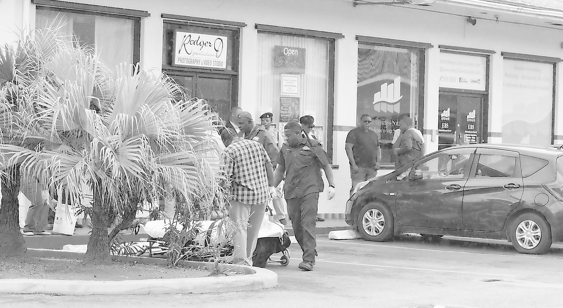 A MAN leaving an early-morning workout was shot dead yesterday in the parking lot of the Shirley Street Shopping Plaza, just steps from the gym he had attended for nearly three years. Police said the victim, a man in his late 30s, had exited a business establishment shortly after 9am and was walking toward his car when a Japanese vehicle pulled up. A man