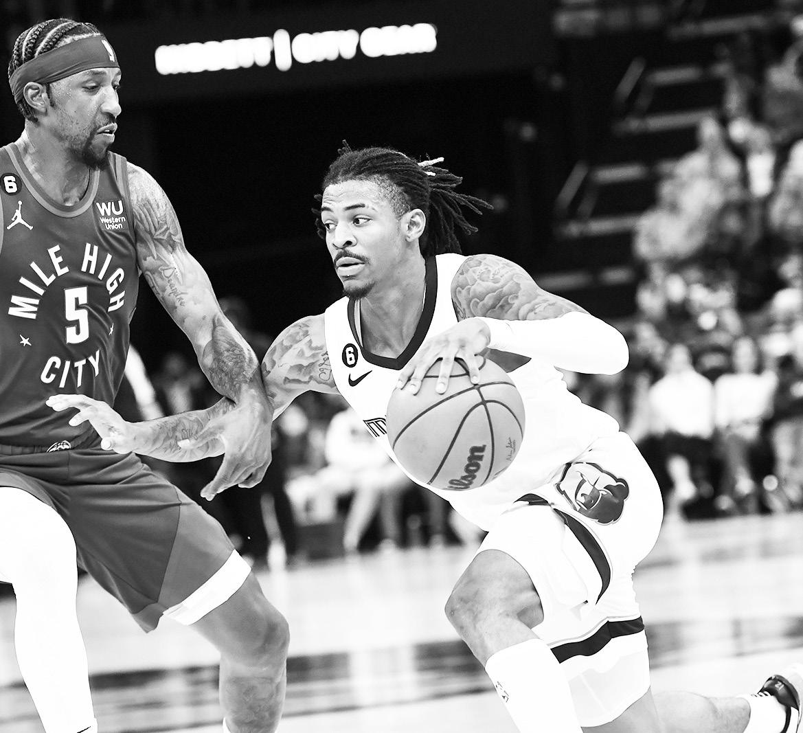 MEMPHIS Grizzlies guard Ja Morant is defended by Denver Nuggets guard Kentavious CaldwellPope (5) during the second half on Saturday.