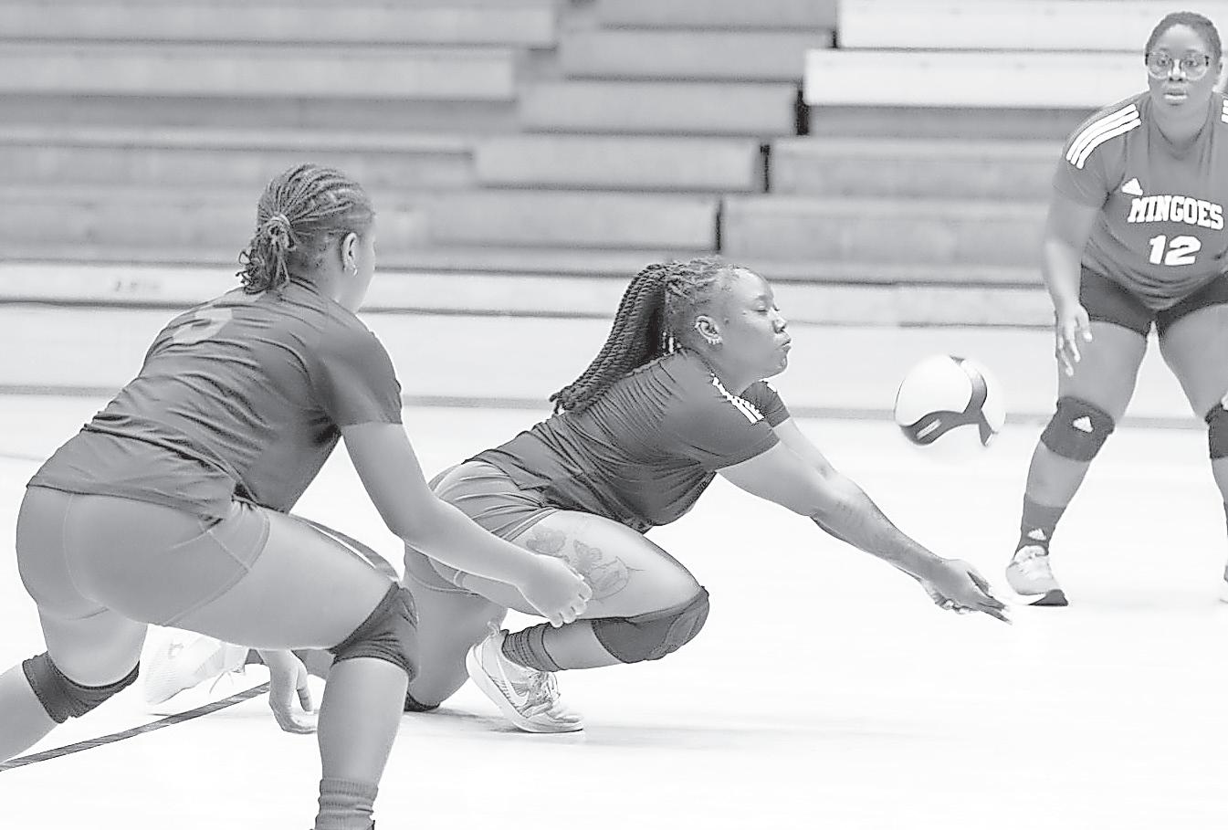 UB Mingoes right hitter Miracle Stubbs goes down for a dig.