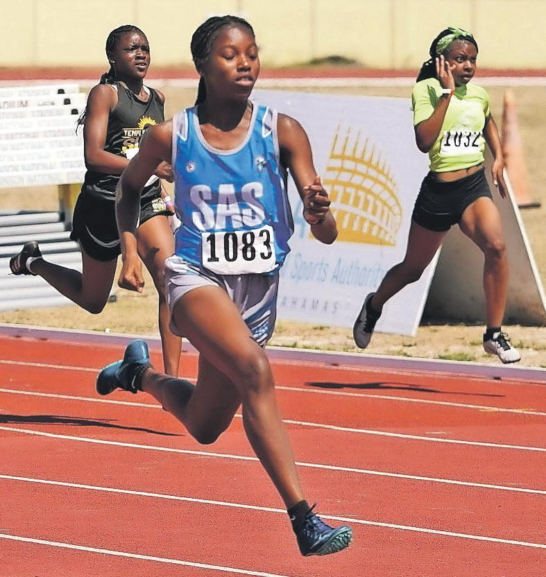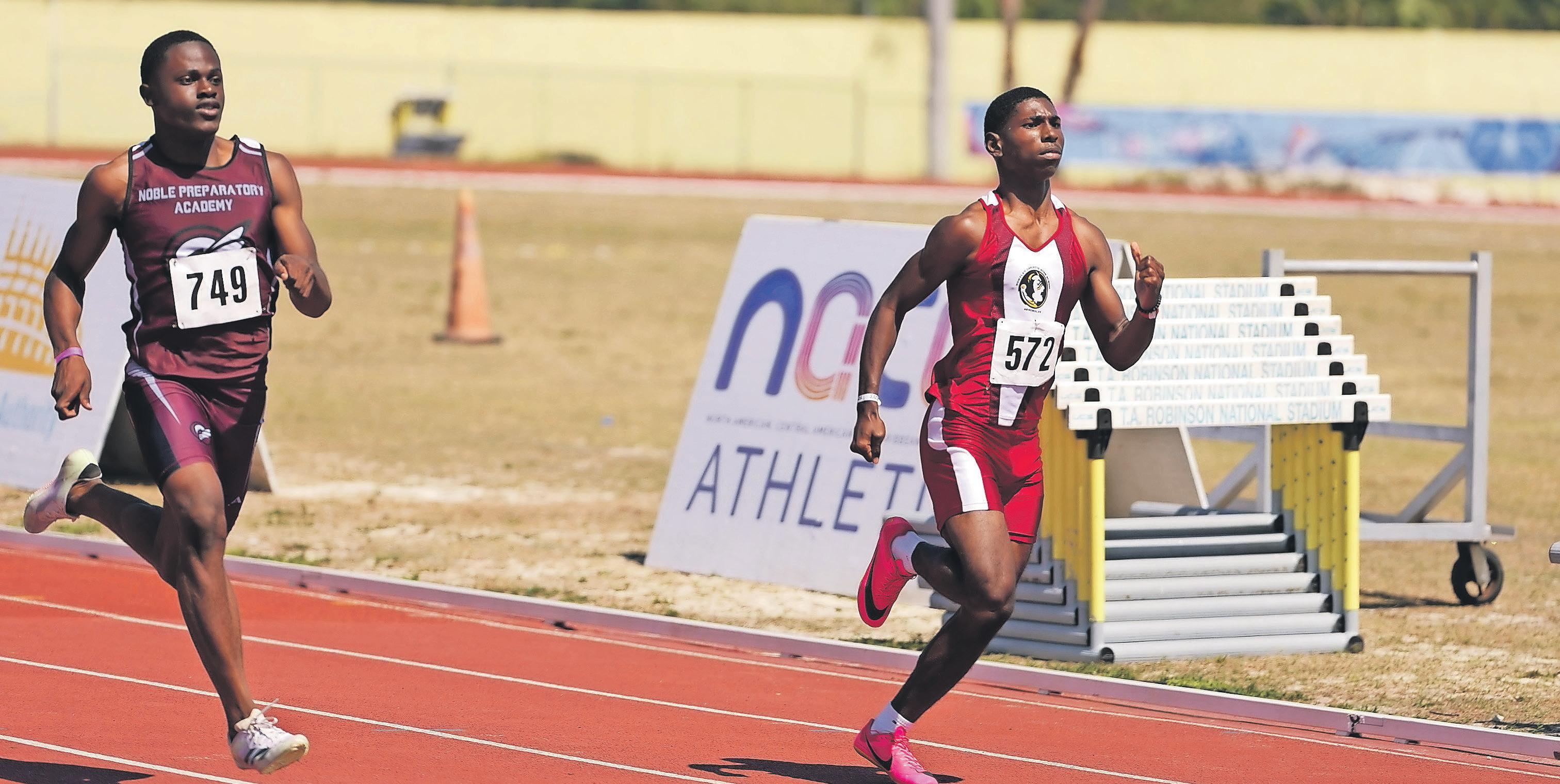 FAST TRACK: Young athletes compete last week during the 2025 Bahamas National High School Track and Field Championships at the original Thomas A Robinson Stadium.