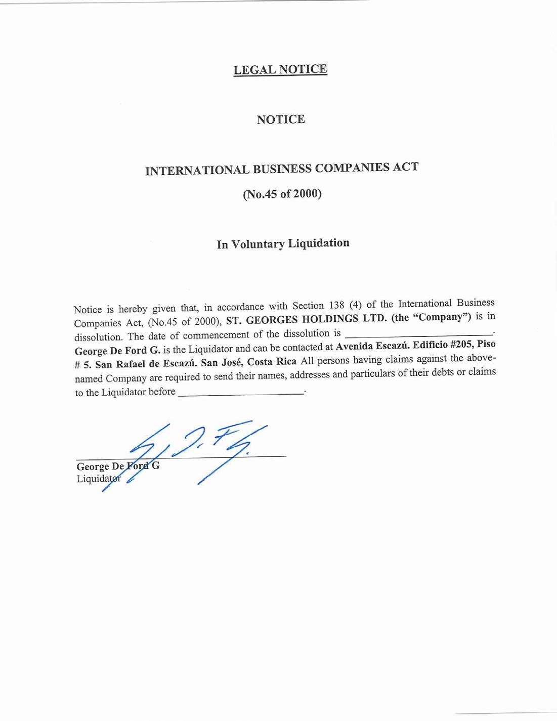 International Liquidator Services Ltd. situated at 3rd Floor Whitfeld Tower, 4792 Coney Drive, Belize City, Belize is the Liquidator.