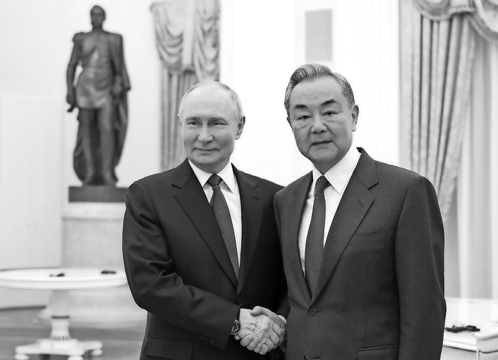 RUSSIAN President Vladimir Putin, left, and Chinese Foreign Minister Wang Yi shake hands during their meeting at the Kremlin in Moscow, Russia, Tuesday, April 1, 2025. Photo:Grigory Sysoyev/AP