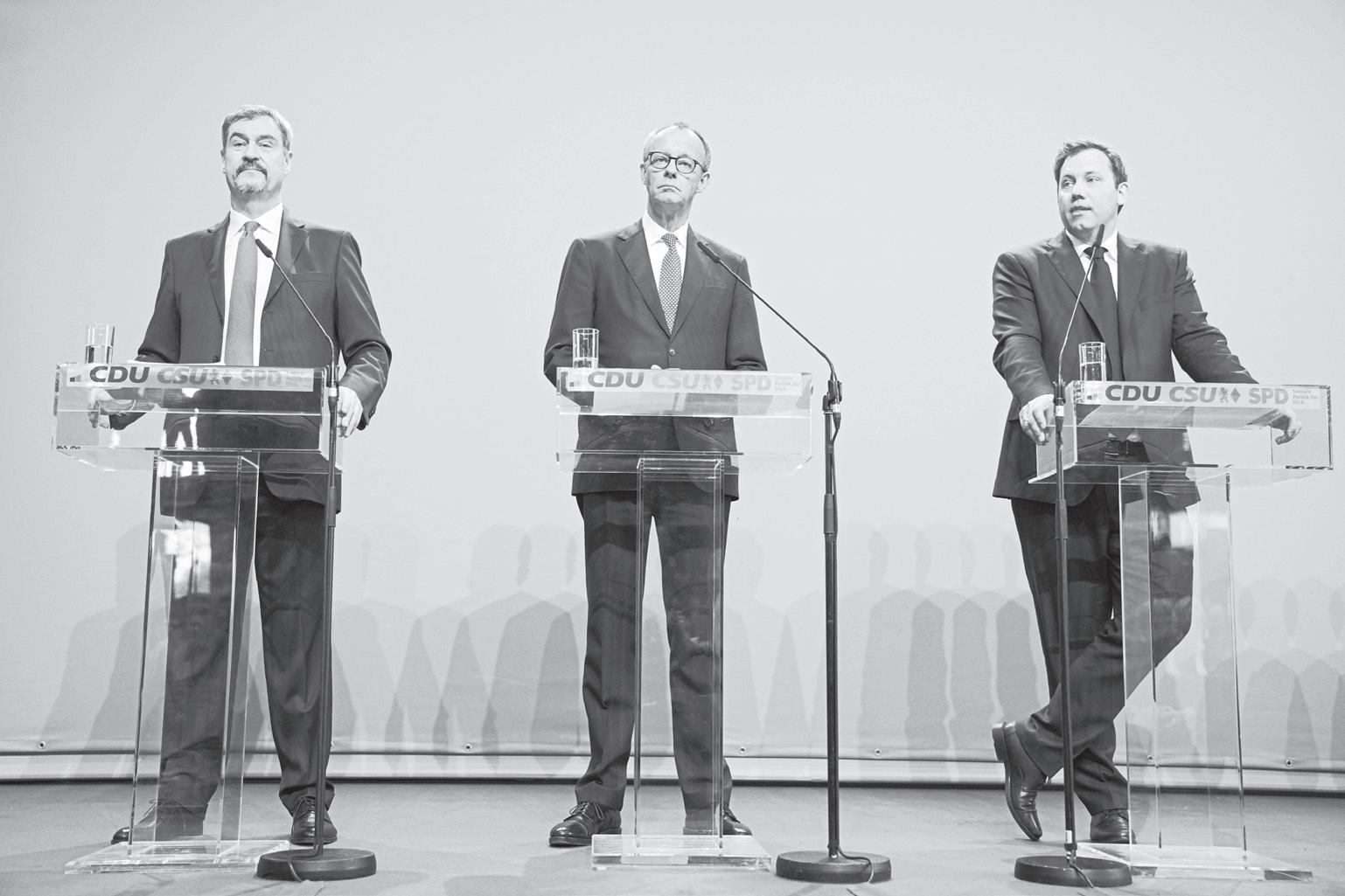 The market turbulence caused by US President Donald Trump’s announcement of sweeping tariffs added to pressure for Merz’s Union and the Social Democrats to bring their coalition talks to a conclusion. The tariffs threaten to add to the woes of an exportheavy economy that shrank for the past two years.