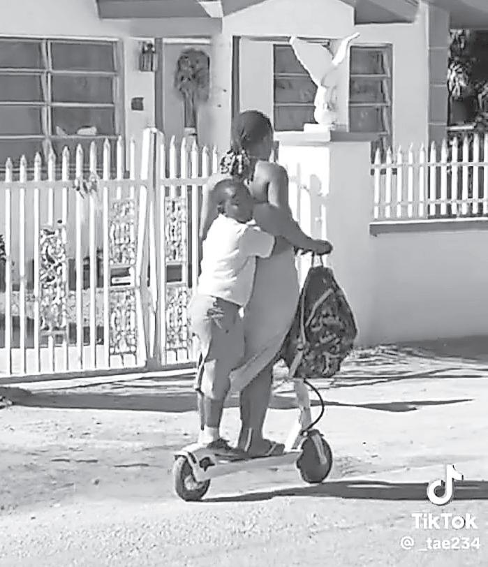 Determined not to let her child fall behind, Ms McCartney began saving for a scooter — an affordable option she was familiar with from her time in Eleuthera. She purchased it just over a month ago and made it part of her daily routine.